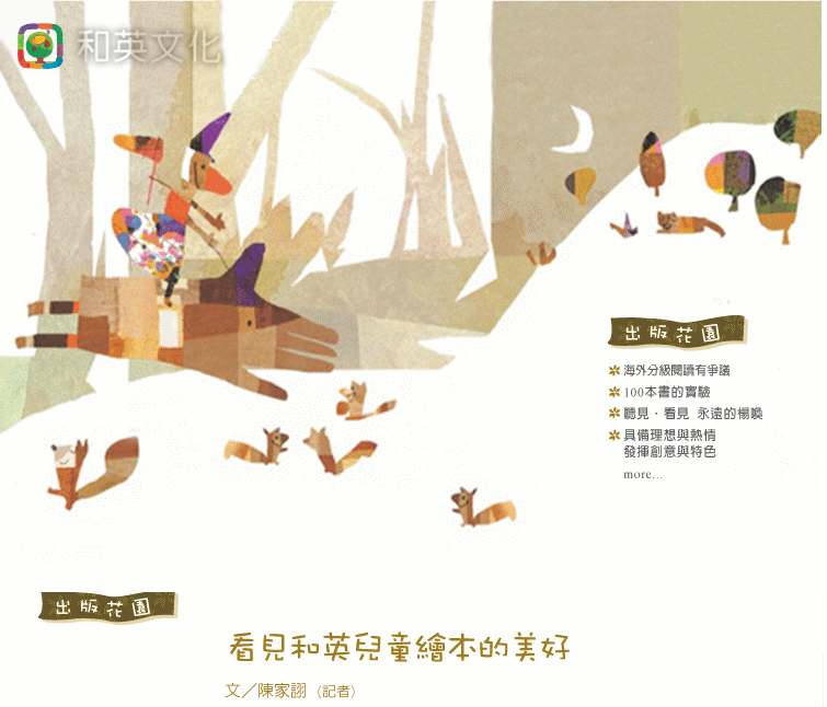 「我一直相信每個人應該投入自己最喜歡、最專業的領域。和英只做繪本,在這個領域,我比較得心應手,能發揮自己的長處。另外,我也一直相信,出版社應該將最主要的資源、最大的心力投注在書本身。」